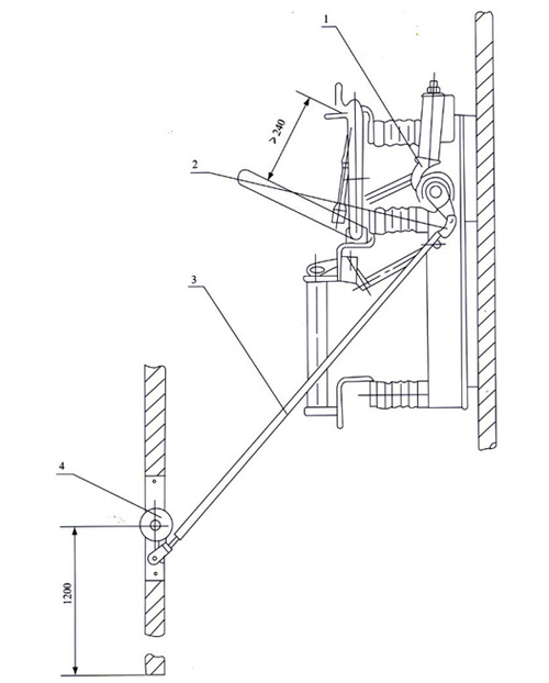 1、負荷開關 2、彎連接 3、3/4"焊接鋼管(用戶自備) 4、操動機構 |