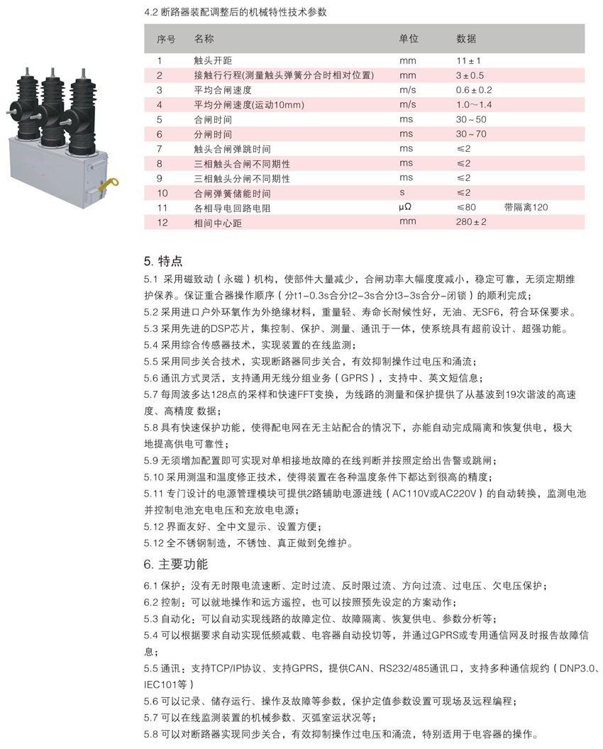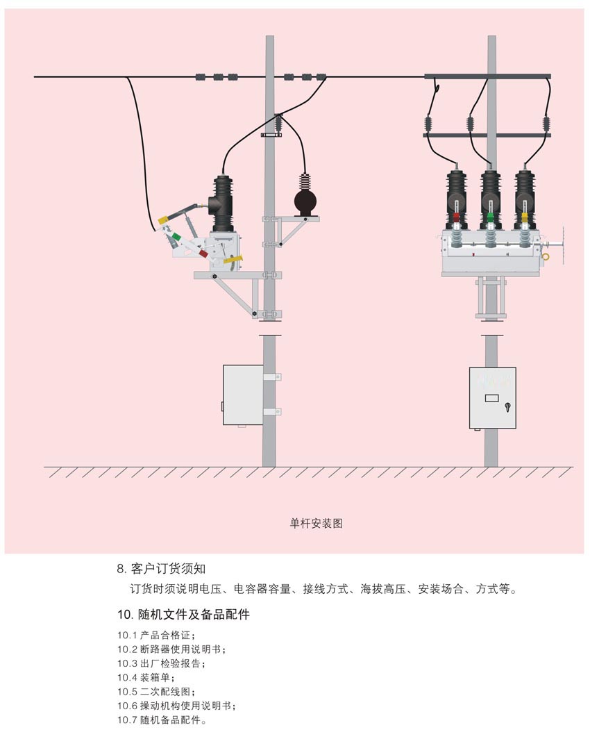 ● 采用進口戶外環氧樹脂作為外絕緣材料,重量輕、壽命長達15年以上,耐候性好,無油、無SF6,符合