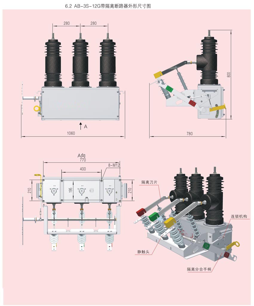 ● 選用一體化設計的高壓隔離開關,使結構緊湊,安裝檢修非常方便;