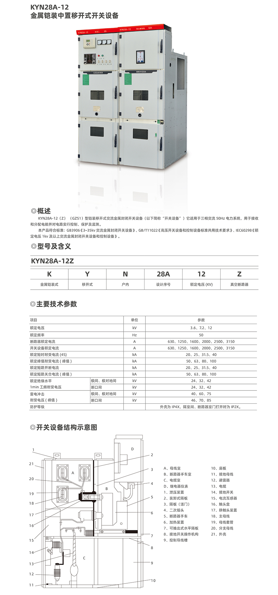 KYN28A-12金屬鎧裝中置移開(kāi)式開(kāi)關(guān)設(shè)備