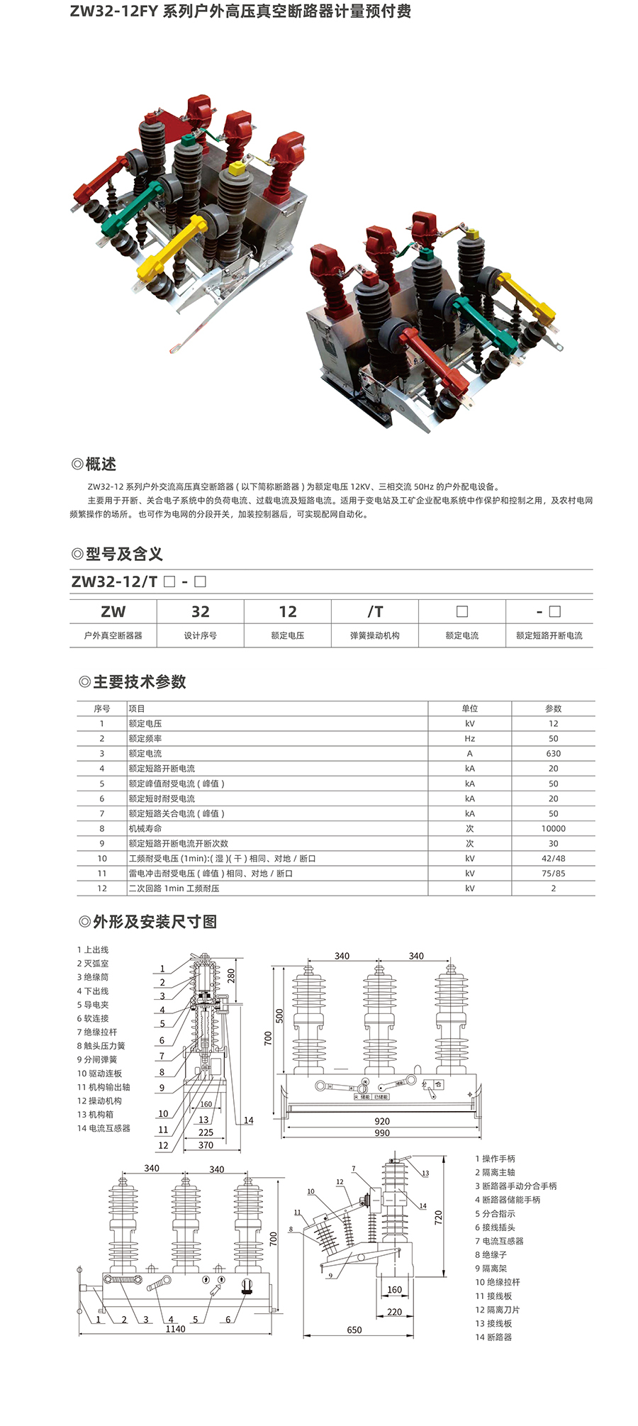 10kv智能化預(yù)付費計量真空斷路器是電力行業(yè)兩網(wǎng)改造的產(chǎn)品之一。ZW32-12F智能真空一體預(yù)付費裝置是、真空開關(guān)與高壓計量箱分體結(jié)構(gòu)的換代產(chǎn)品,此產(chǎn)品將計量CT、PT組 合為一體,,全封閉結(jié)構(gòu),適應(yīng)南方多雨霧氣候。體積小、重量輕易于安裝,開關(guān)與計量部分二次引線無外露接口提高了整體防盜能力,單桿安裝降低了原來雙桿安 裝時金具、架子的大量,遠(yuǎn)程預(yù)付費控制部分有效地解決了長期困擾電力行業(yè)因竊電、欠費行為導(dǎo)致的線損居高不下的難題,實現(xiàn)了電力行業(yè)對終端用戶智能 化、信息化、自動化管理。帶GPRS通訊功能的智能高壓真空斷路器實現(xiàn)高壓線路的智能化遠(yuǎn)程化計量與控制,阻斷了一切制手段的偷竊電是現(xiàn)代化智能電網(wǎng)建設(shè)的必然選擇。