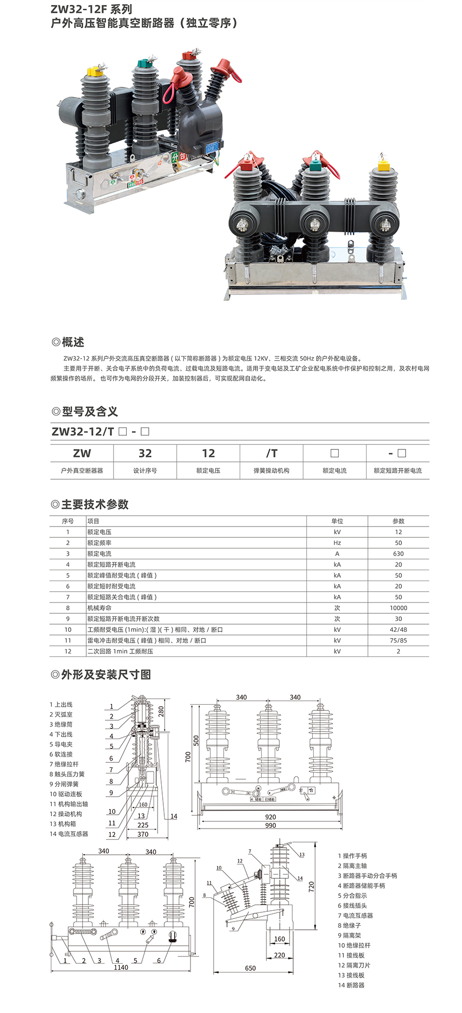 ZW32-12F系列戶外高壓智能真空斷路器(獨立零序)